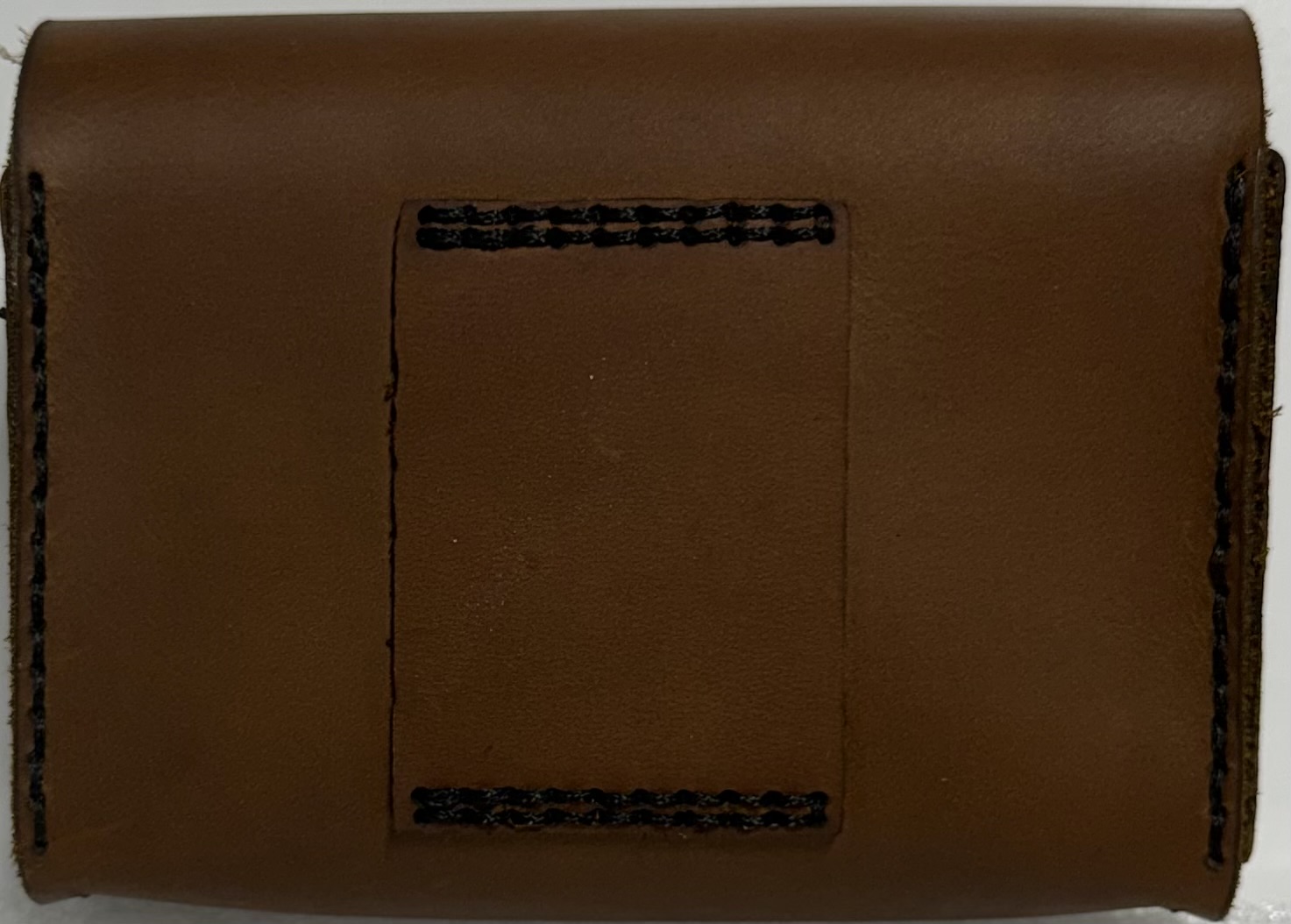 This pouch has a loop for your belt. Its approximately 5″ wide x 4″ tall x 2″ deep. It has a snap closure.